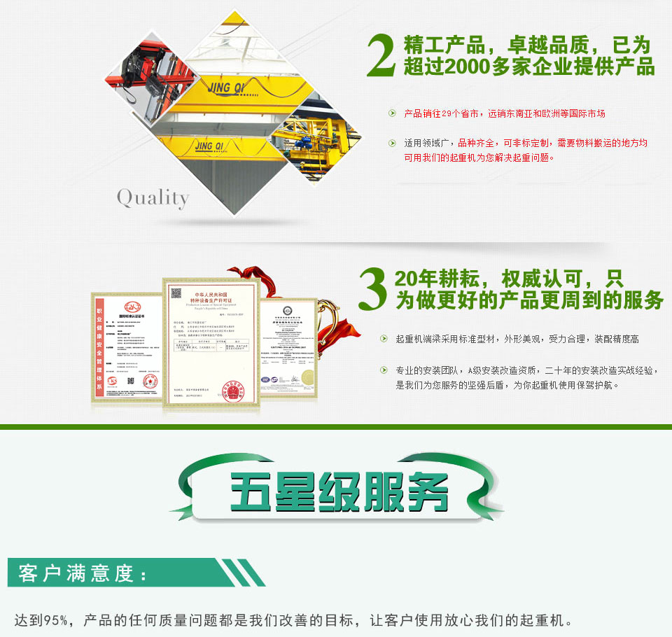 有需求才見專業(yè),有需求才見服務(wù),靖江起重專業(yè)的技術(shù)團隊生產(chǎn)出來的起重機質(zhì)量非常好;產(chǎn)品性能優(yōu)良,質(zhì)量